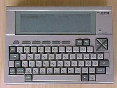 | Particularité : | Portable format A4 proche du Tandy 100, en réalité fabriqué comme celui-ci par Kyocera, c'est un clone du Kyotronic KC-85. Disponible en couleur beige, métal ou rouge Alimentation: 4 piles AA, pack NiCad ou adaptateur 6V. |