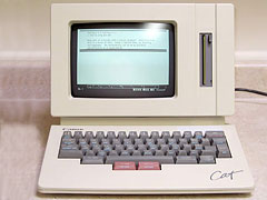 | Particularité : | Le Canon CAT est avant tout connu comme l'oeuvre de Jef Raskin, spécialiste dans le domaine de l’interaction homme-machine et concepteur à l'origine du projet Macintosh d'Apple. Axé essentiellement sur la bureautique, le CAT est doté d'une interface utilisateur en mode texte et se veut totalement intuitif, ainsi la plupart des fonctions sont accessible grâce à deux touches particulières. Sa commercialisation fût très courte, selon les sources même du constructeur, seulement 20000 machines auraient été produites en 6 mois d'existence. |