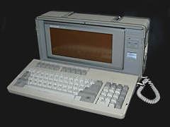 | Particularité : | Portable au format grille-pain (410 x 160 x 215 mm) et d'un poids de 8,5 Kg. Evolution en 1986 vers le modèle PC-7100 avec un disque du de 20 Mo à la place du deuxième lecteur. |