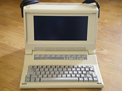 | Affichage : | Ecran LCD rétro-éclairé compatible CGA Texte: 80x25 caractères Graphique: 640x200 pixels Compatible VGA par l'ajout d'une carte vidéo optionelle |