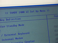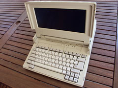 | Affichage : | Ecran monochrome LCD passif (bleu), compatible CGA Texte: 80 x 25 caractères Graphique: 640 x 200 pixels |
