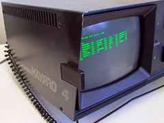 | Affichage : | Moniteur monochrome vert de 9" intégré Texte: 80 x 24 caractères Graphique: 160 x 100 pixels |