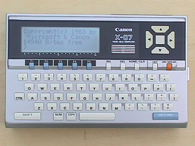 | Particularité : | Format A5, entre gros pocket et mini portable, le Canon X07 est équipé d'un Basic Microsoft et dispose d'une gamme très complète d'accessoires. |