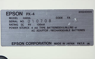 | Particularité : | Un compartiment amovible à droite de l'écran permet l'ajout d'une mini-imprimante, d'un lecteur de cassettes, d'une cartouche de RAM ou de ROM, d'un modem et sans doute d'autres interfaces. Appelé HC-40 au Japon, le PX-4 est une variation du PX-8, ils succèdent tous les deux au célèbre HX-20. |