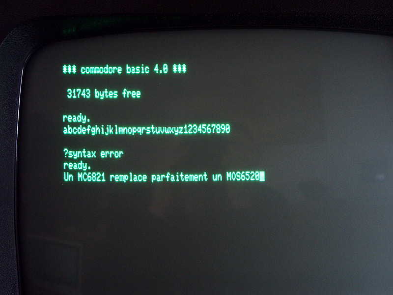 | Particularité : | Il s'agit d'une évolution en version 80 colonnes de la série CBM 4000. Une extension mémoire de 64 Ko est disponible sous la forme d'une carte d'extension qui se place au dessus de la carte mère, néanmoins cette mémoire supplémentaire n'est pas accessible directement sous Basic. |