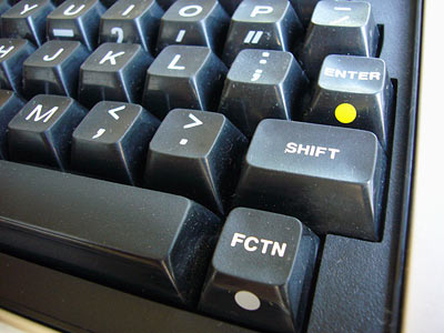 | Particularité : | Le modèle d'origine, nommé TI99/4 et sorti dès 1979 aux Etats Unis, disposait de caractéristiques identiques et était le premier ordinateur personnel à utiliser un processeur 16 bits. Malheureusement l'utilisation massive d'un langage interprété associé à une gestion très particulière de la mémoire, partagée avec la RAM vidéo et adressée sur 8 bits uniquement, fait au final du TI99 une machine plutôt lente. Intrinsèquement il n'y a pas de modifications importantes, quelques bugs corrigés et une nouvelle version du processeur graphique pour l'essentiel. Le nouveau clavier mécanique par contre est de très bonne facture et par conséquent plutôt agréable à utiliser. Le boîtier de couleur noire est recouvert d'un enjoliveur en aluminium, au demeurant très joli, mais qui se raye trop facilement, et qui ne supporte aucun petit coup sans garder à jamais une trace. Une évolution purement cosmétique est commercialisée en 1983. |