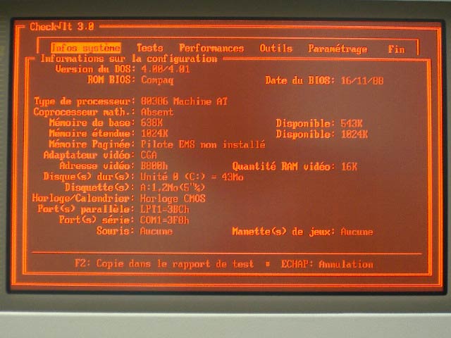 | Processeur : | i80386 à 20 MHz Support pour coprocesseur 80387 |