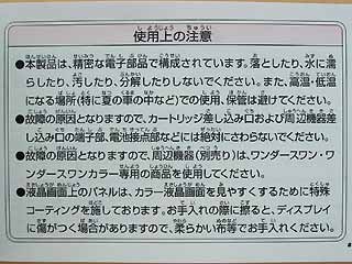 | Particularité : | Version couleur de la Wonderswan. Disponible au Japon uniquement. |